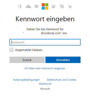 Klicke auf „Microsoft Outlook“ und melde Dich mit Deinem Microsoft-Konto an.