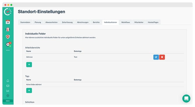 Individualisieren: Zusätzliche Informationen in Arbeitsbereichen, Tags, Schichten und Zeiterfassungen hinterlegen
