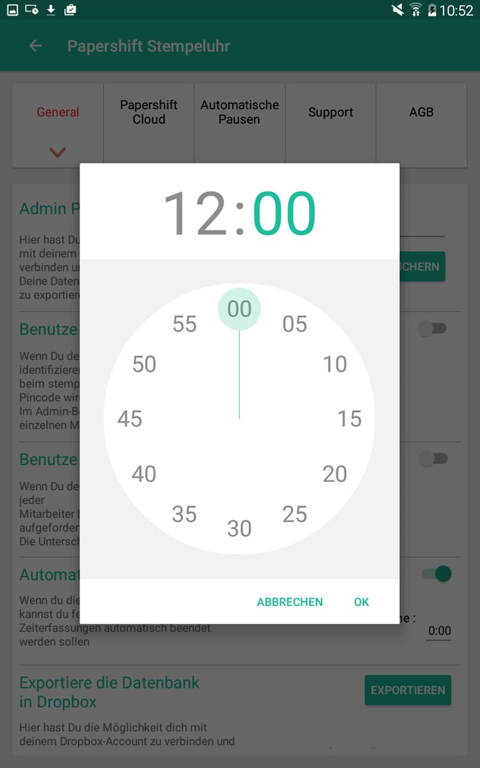 Zeit für das automatische Ausstempeln festlegen
