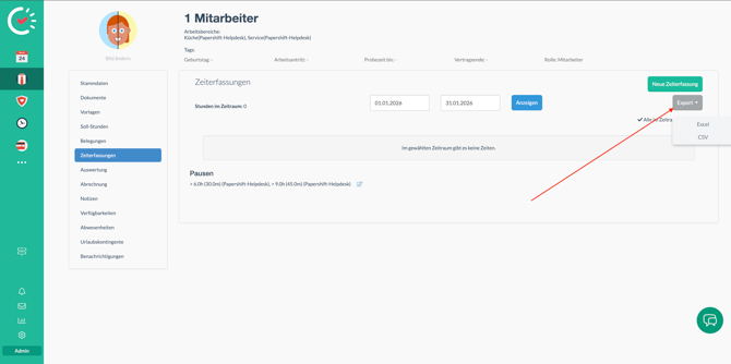 Zeiterfassungen eines einzelnen Mitarbeiters exportieren